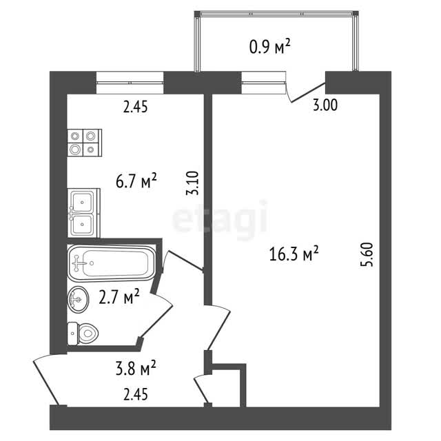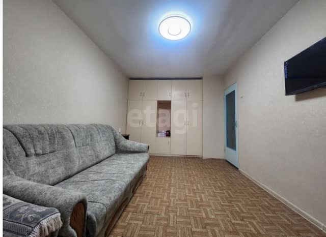 В квартире просторная комната площадью 16,3 кв.м. с выходом на застекленный балкон, из которого открывается вид на зеленый двор.