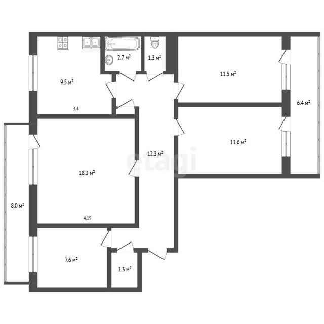 Просторная четырехкомнатная квартира площадью 90 м² на последнем этаже девятиэтажного дома предлагает редкое сочетание уединенности и панорамного обзора. Объект отличается рациональной планировкой с изолированными комнатами и двумя дополнительными пространствами — большой лоджией и балконом. Кухня площадью 9 кв. м служит функциональным центром квартиры.